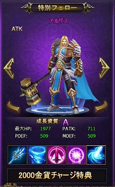 ・アルザス(特別フェロー)累計 2,000金貨チャージ特典
