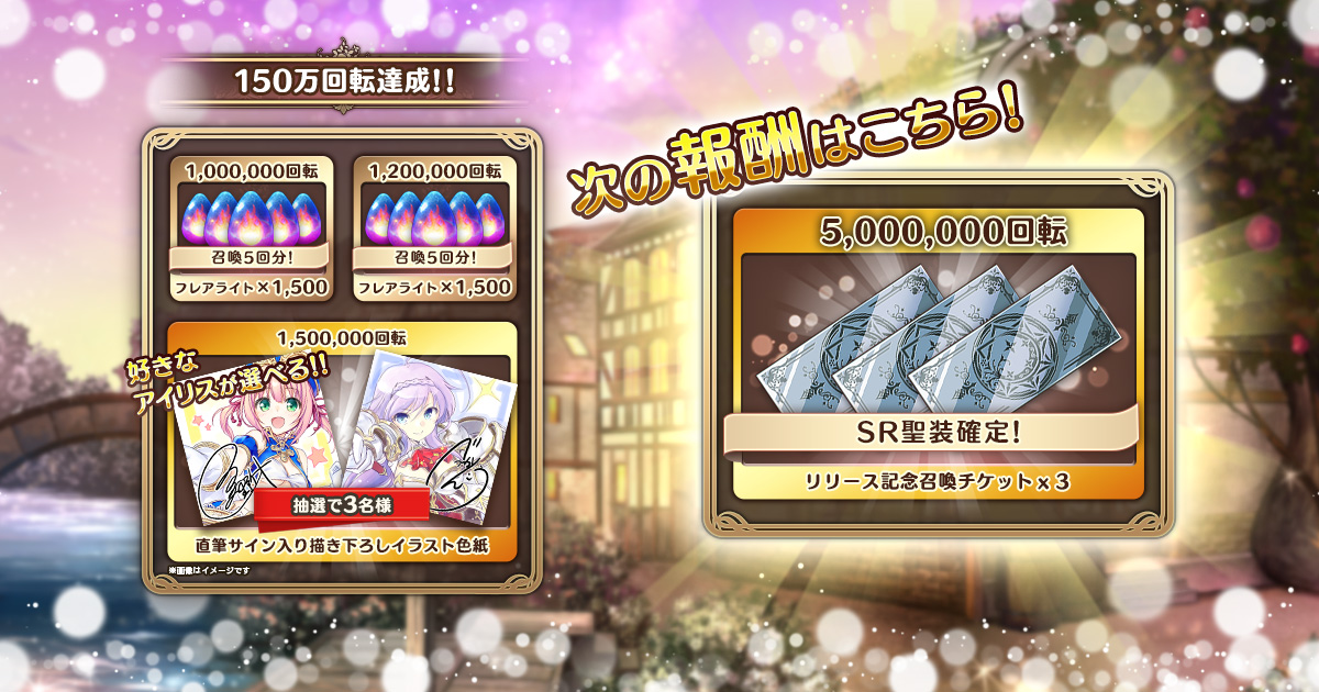 「あいりすミスティリア!」,事前登録ガチャの150万回転突破の報酬が確定。500万回転突破の追加報酬も決定