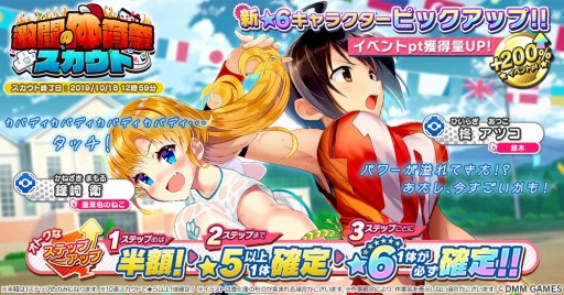 イベント「熱闘!激闘!大混戦!?聖ユニオン体育祭!」開催に合わせて「激闘の体育祭スカウト」が同時開催! 3ステップ目で最高レアリティの★6キャラクターが確実に手に入るステップアップスカウトもありますので、このチャンスをお見逃しなく!!