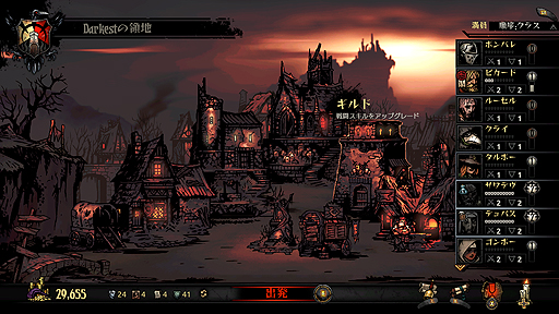 Darkest Dungeonは,プレイするたびにダンジョンが変わるなど,いわゆるローグライクの要素を持つダークファンタジーRPG。プレイヤーは街で雇った冒険者(=ヒーロー)でパーティを組み,ダンジョンを攻略していく。ヒーローは,ダンジョンに入るだけでストレスが溜まるだけではなく,敵と戦ったり,お腹が空いたりしてもストレスが溜まり,ストレス値が高まることでプレイヤーの思い通りに動かなくなる。ストレス管理という要素を持つ点も,本作の大きな特徴だ。