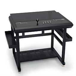 本製品は,見てのとおりアーケードスティック内蔵型のデスク,もしくはデスク型のアーケードスティックと呼べるもの。ボタン配置は同社「Obsidian」シリーズと同様の,左端がちょっと下がった8ボタンレイアウトだ。接続先の機器を切り替えるスイッチャーや,連射機能も内蔵している。コンパネ部は手前に倒す形で開くことができ,他社製のコントローラ基板への換装が容易なこともアピールされている。