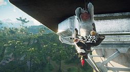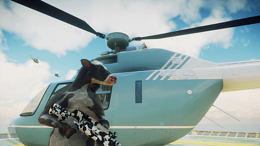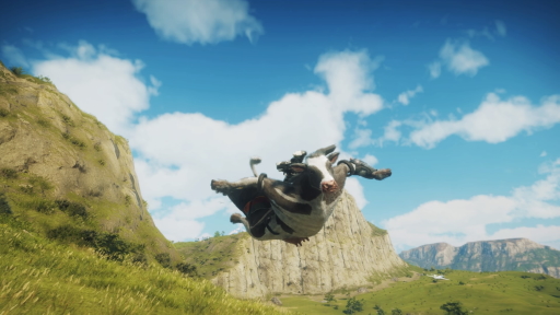 グラップリングフックで高速移動したり,車やバイクを縦横無尽に乗り回したり,ウイングスーツで空をかっこよく飛んだり……これほどまでワイルドな牛がかつていただろうか。いや,いまい(多分)。