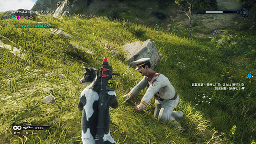 ちなみに,カウガンを牛に向けて使うと何故か「ジャストコーズ3」での宿敵,ディラベロ将軍になる