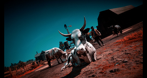 Xbox One。以下,RDR2)だ。さまざまな種類の牛が登場するので,撮影対象には困らない。