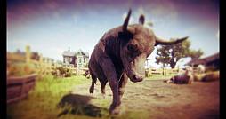 力強い見た目のアンガス種の去勢牛。NPCやプレイヤーに気付くと容赦なく突進してくる荒ぶった牛もいるので,背後には気をつけたい