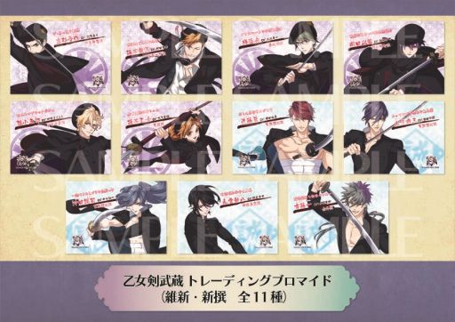 「乙女剣武蔵」初のグッズ化!バトル系立ち絵を使用したブロマイドが、3ver.で登場です。可愛い&カッコいい&美しい(?)剣豪たちをコレクションしちゃおう♪
