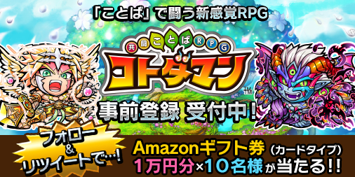 「共闘ことばRPG コトダマン」,Amazonギフト券が当たるキャンペーンを開催