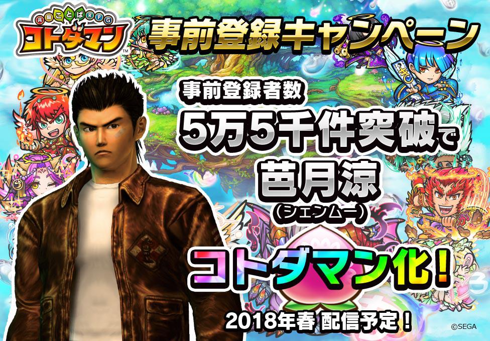 「共闘ことばRPG コトダマン」,事前登録者数5万5千でシェンムーの芭月 涼が登場