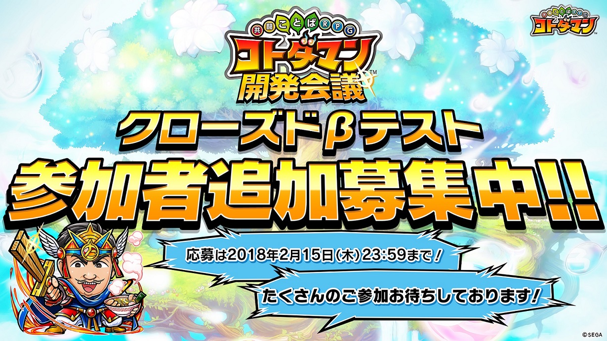 「共闘ことばRPG コトダマン」,クローズドβテスト参加者の追加募集を開始。事前登録数は5万件を達成,天山広吉選手のコトダマン化が決定