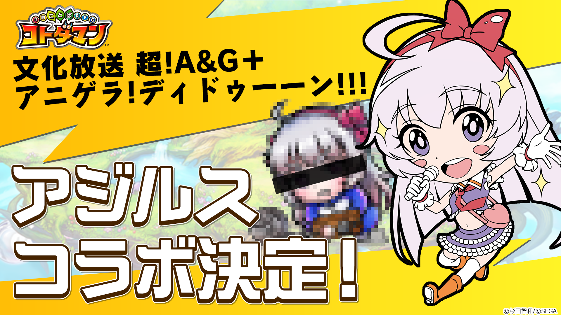 「共闘ことばRPG コトダマン」が「文化放送 超!A&G+ アニゲラ!ディドゥーーン!!!」とコラボ。杉田智和さん考案のアジルスがゲームに登場