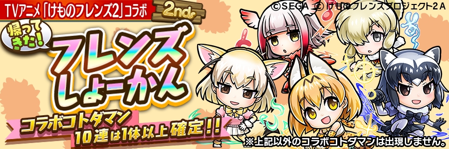 「共闘ことばRPG コトダマン」,TVアニメ「けものフレンズ2」コラボ第2弾が開催