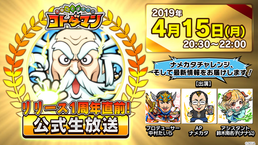 「共闘ことばRPG コトダマン」,本日から「1周年前夜祭イベント」がスタート