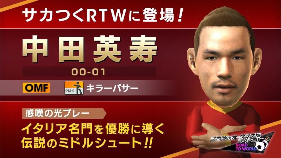 「サカつく RTW」,中田英寿さんのキャラがピックアップスカウトに登場