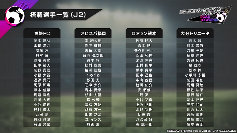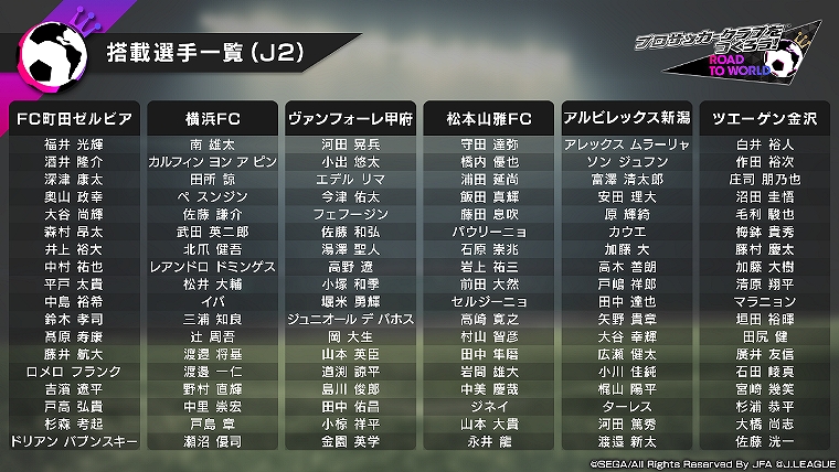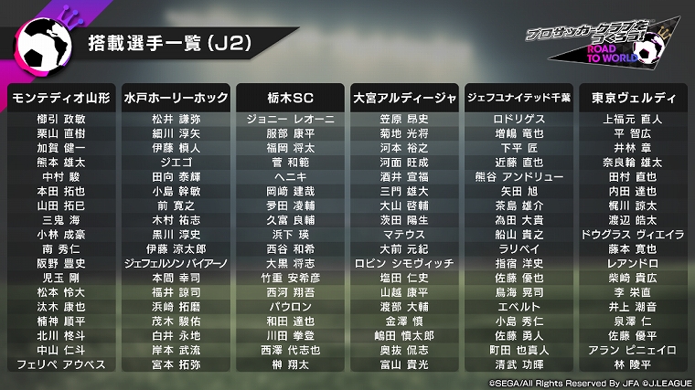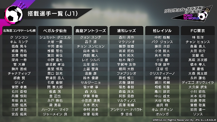 「プロサッカークラブをつくろう! ロード・トゥ・ワールド」,Jリーグモードに登場する選手リストが公開に
