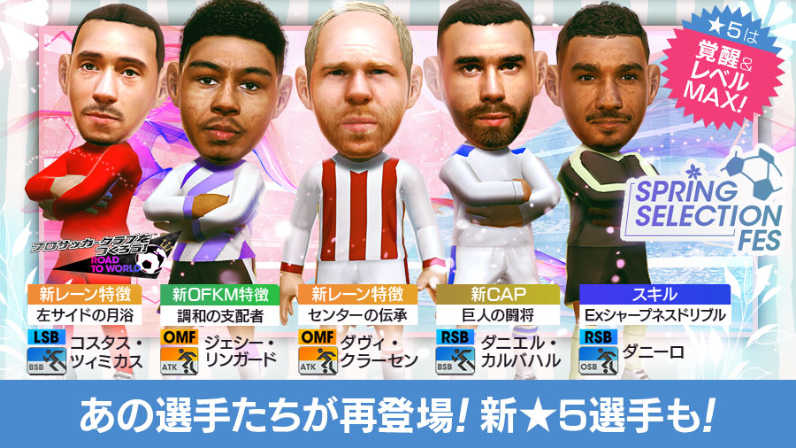 「サカつくRTW」,★5選手がレベルMAXで登場する“SPRING SELECTION FES”を本日より開催
