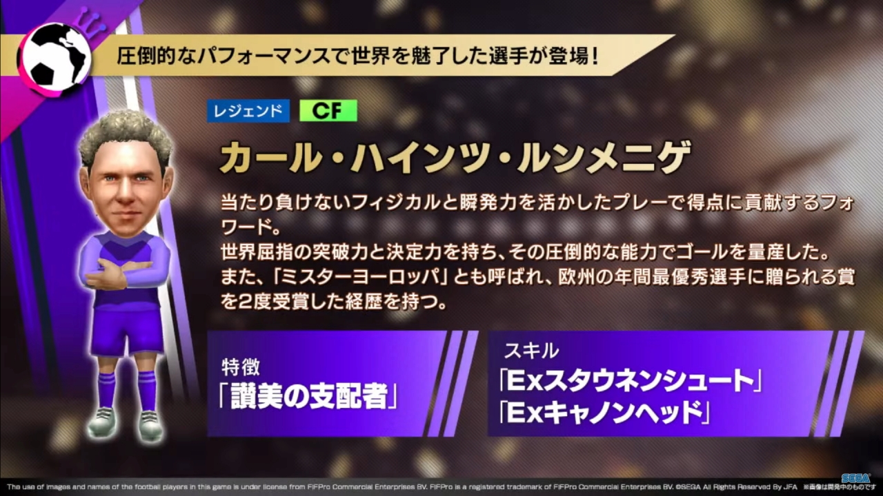 (C)SEGA (公財)日本サッカー協会公認 The use of images and names of the football players in this game is under license from FIFPro Commercial Enterprises BV. FIFPro is a registered trademark of FIFPro Commercial Enterprises BV.