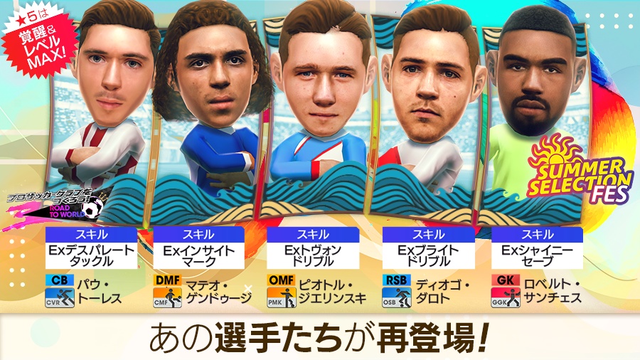 「サカつくRTW」,★5選手がレベルMAX,覚醒2段階達成,各スキル・各能力UP Lv.2達成で登場するFESを本日より開催