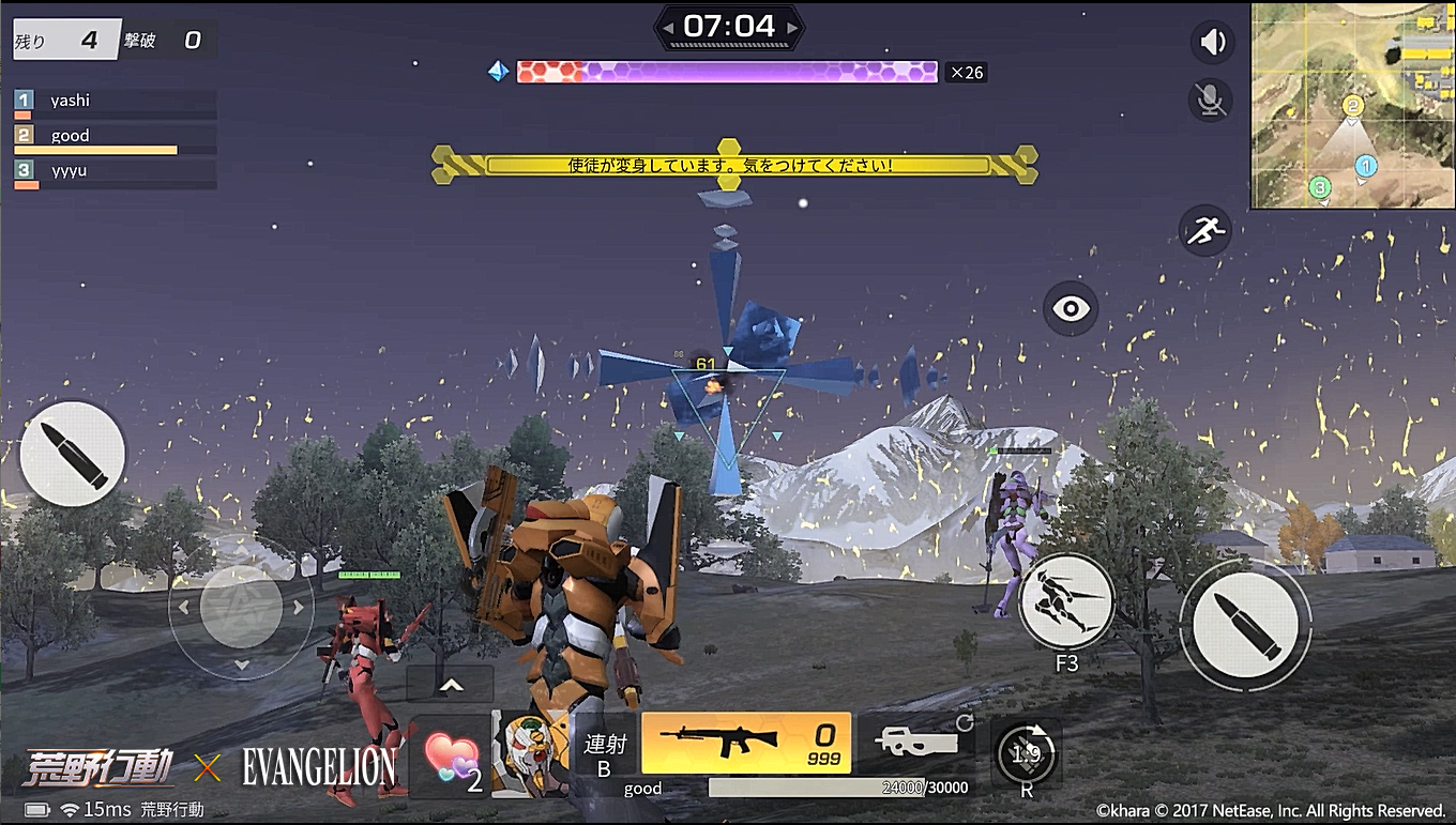 • 画像ギャラリー No.003 | 「荒野行動-Knives Out-」×「エヴァンゲリオン」コラボ第2弾が1月14日まで開催中。エヴァと使徒に分かれて3対1の対戦を楽しめる