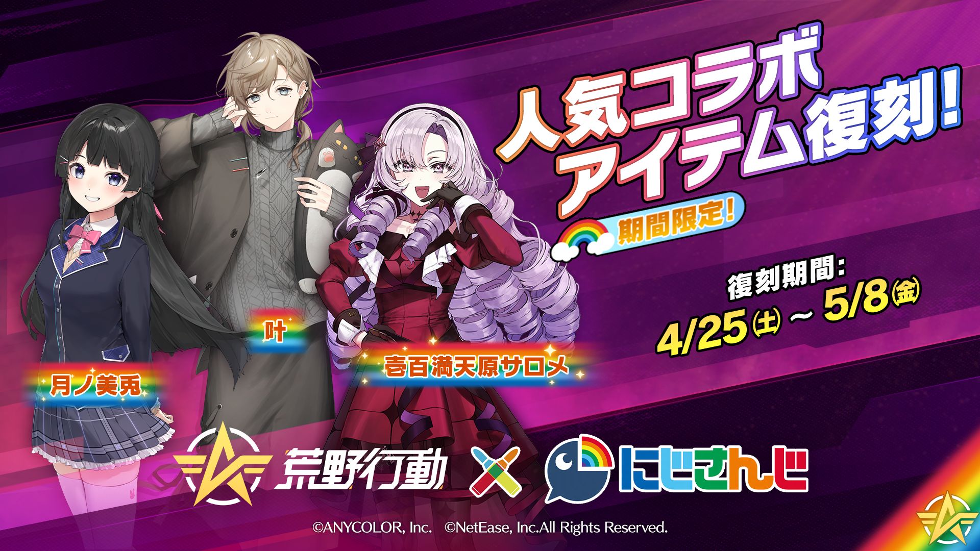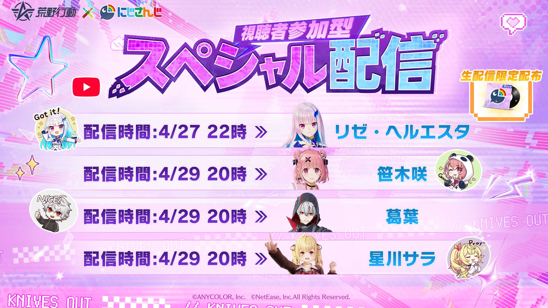 「荒野行動」×「にじさんじ」コラボイベント第4弾がスタート。笹木咲さん,葛葉さん,リゼ・ヘルエスタさん,星川サラさんが登場