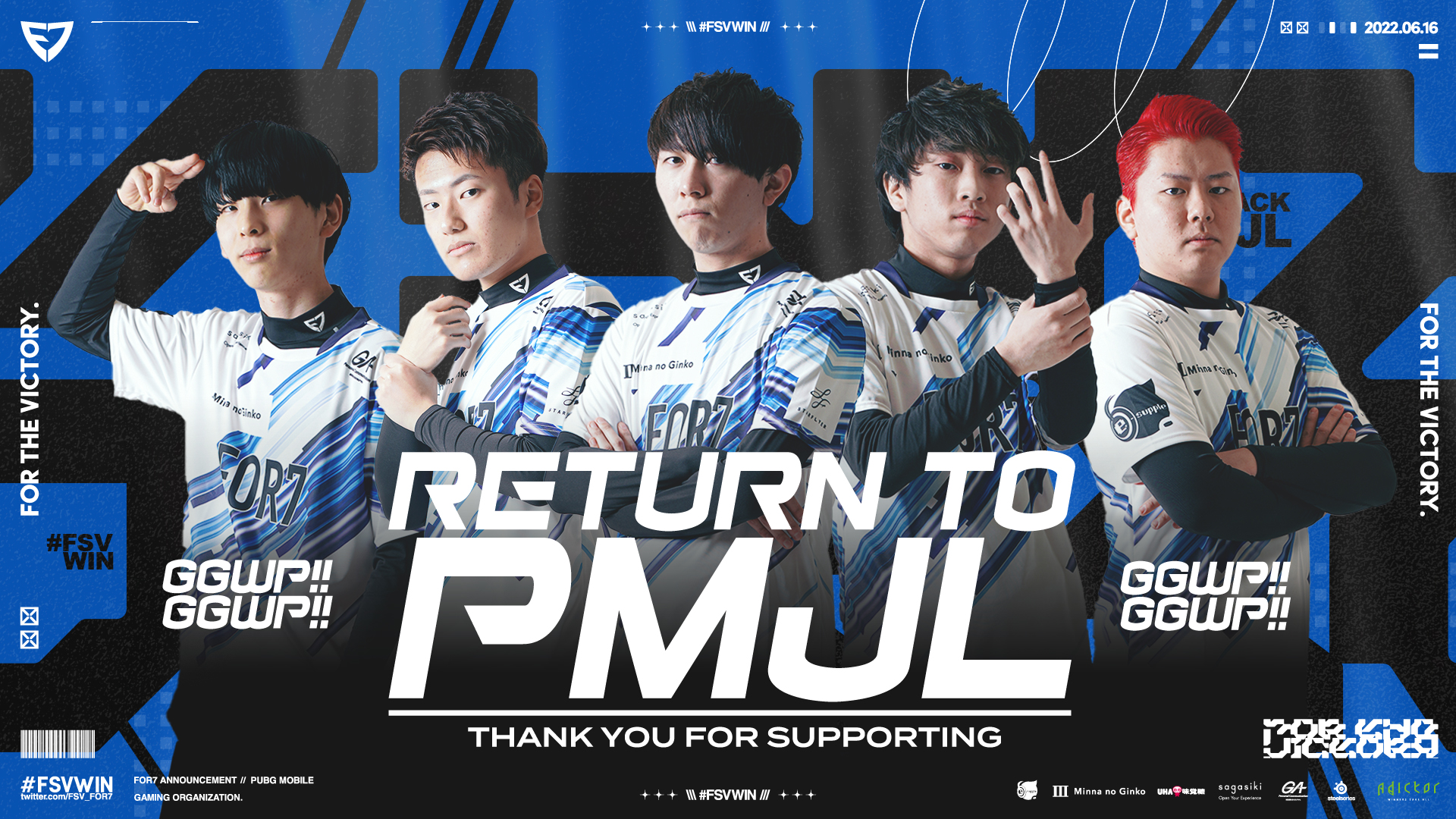 プロeスポーツチームFOR7の「PUBG MOBILE」部門が“PMOT”を突破し,“PMJL”への出場権を獲得