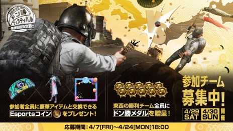 「ドンフェス」を4月29日(土)・30日(日)に開催します!「ドン勝フェスティバル」とは、PUBG JAPANが主催する公式のエンジョイ大会で、前回は約400チームにご参加いただきました。大好評につき、今回で5度目の開催となります。