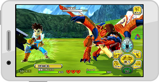 各種メニューやコマンドはタップで選択、キャラクターは画面左側をタップで表示される移動用スライドパッドで移動など、直感的な操作で誰も遊べるぞ。