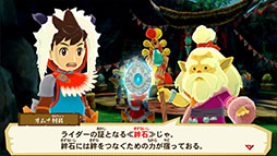 村長から絆石を授かった主人公は試練を乗り越えライダーとなる。