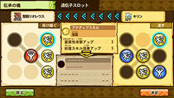 「伝承の儀」を行うとことで、他のオトモンのスキルを受け継がせることが可能だ。