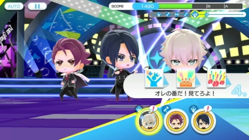 ライブ中のアイドルたちからコールがかけられることも。制限時間内に、正しいアクションを選択し、アイドルたちをサポートしましょう。