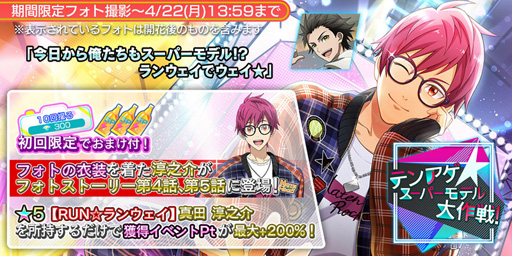 さらに、摩天ロケットの真田淳之介(CV.服部想之介)の新★5 フォトが登場する、期間限定のフォト撮影“テンアゲ☆スーパーモデル大作戦!”を開催します。