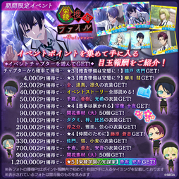 期間中、イベントチャプターのアイドル活動をプレイするともらえる「イベントPt」を集めることで、フォト限定のストーリーが楽しめる「★5【栄稜学園の知謀家】香坂安吾」のメモリーズフォトなどの豪華報酬や、イベント限定の特別なストーリーを楽しむことができます。