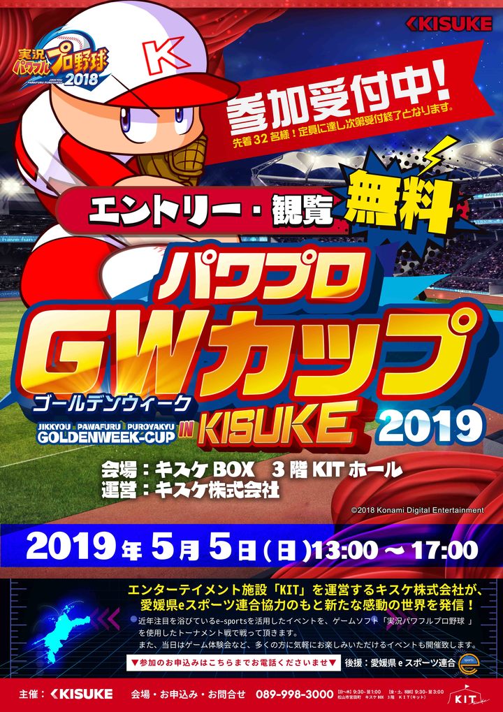 PS4版「パワプロ2018」のトーナメント戦が愛媛県松山で5月5日に開催