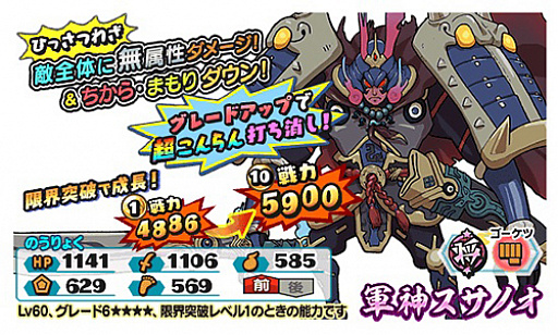 バトル開始後すぐに発動するとりつきや敵全体に無属性ダメージを与えるひっさつわざなど扱いやすい妖怪。