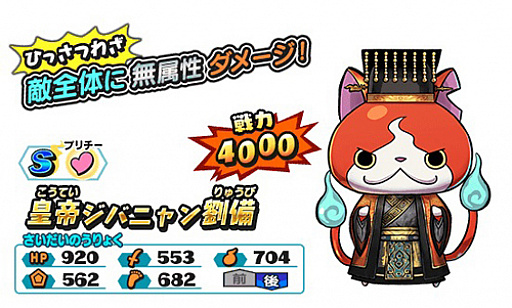 期間中ログインした人全員に、Sランク武将妖怪「皇帝ジバニャン劉備」プレゼント!