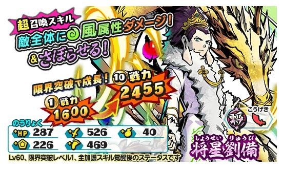 「妖怪三国志 国盗りウォーズ」に将星ランクの軍魔神「将星劉備」が登場