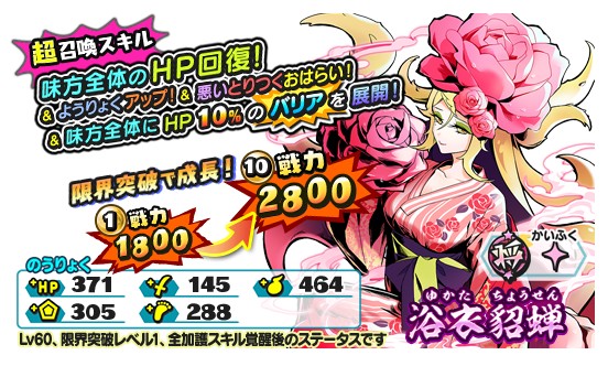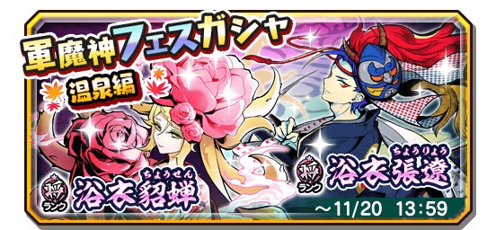 「妖怪三国志 国盗りウォーズ」,浴衣衣装の貂蝉と張遼が登場する“軍魔神フェスガシャ 温泉編”を開催