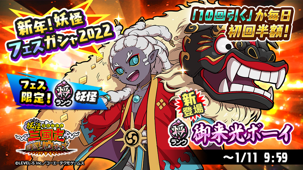 「妖怪三国志 国盗りウォーズ」で妖怪&軍魔神のフェスガシャが開催
