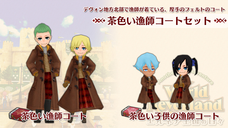 「ワールドネバーランド エルネア王国の日々」,追加コンテンツ「茶色い漁師コートセット」が配信