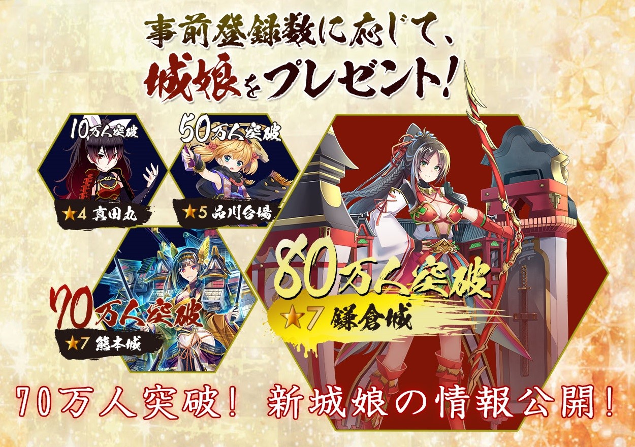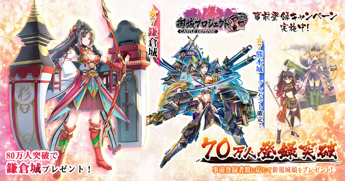 「御城プロジェクト」,iOS/Android版の事前登録者数が70万人突破。「★7熊本城」の報酬が確定