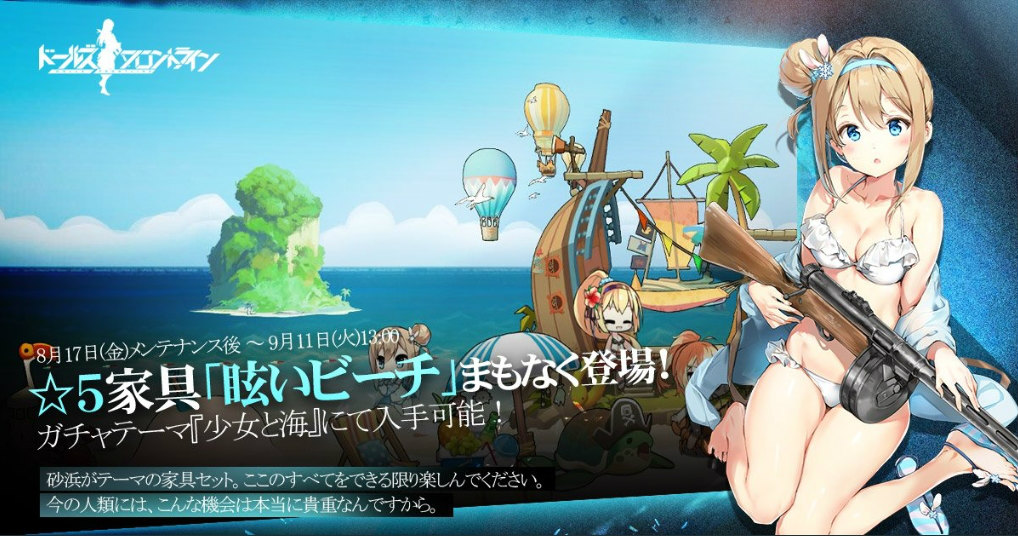 「ドルフロ」,水着スキンテーマ“少女と海”を開催中。100万DL配布メールに関する対応も