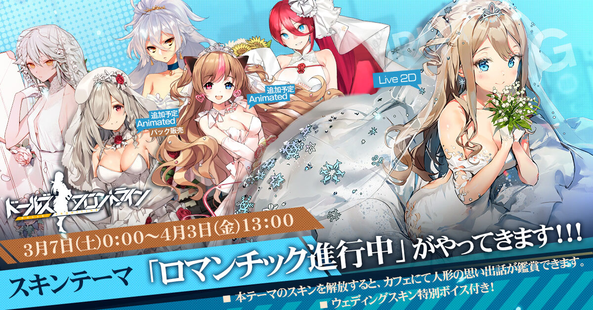 「ドルフロ」,純白のドレス姿がまぶしい新スキンテーマ「ロマンチック進行中」を3月7日に追加。対象となる戦術人形はGr G36cら6名