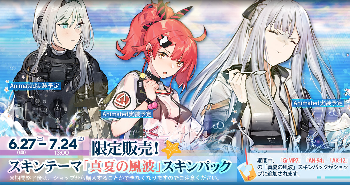「ドルフロ」,新作水着スキンテーマ「真夏の風波」が6月27日に登場。ゲーム内ショップにはAK-12らが着用可能なスキンパックが同時に追加