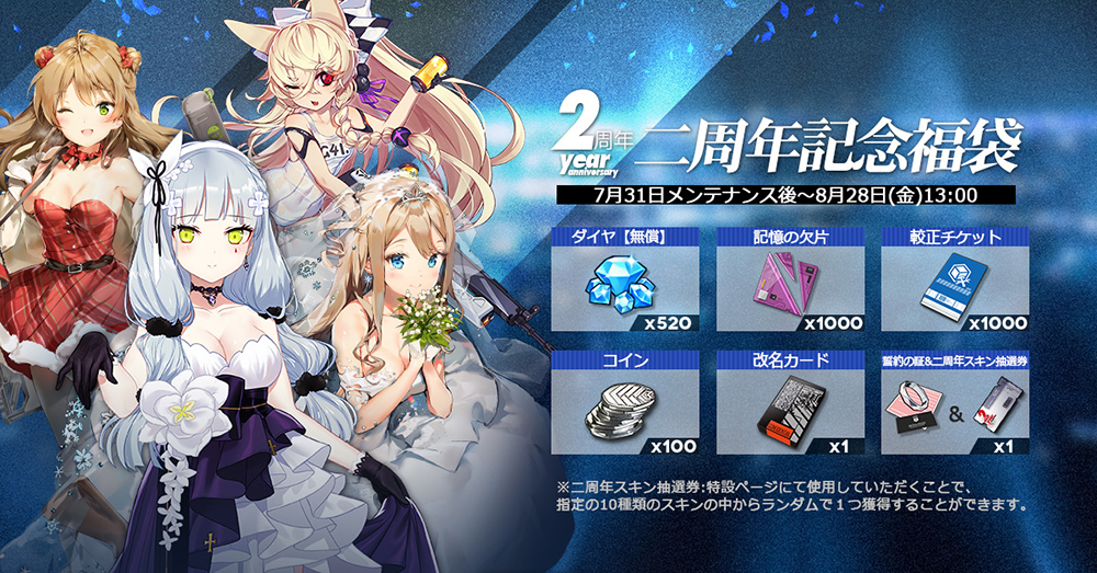 「ドルフロ」2周年記念にあわせたイベント&キャンペーン情報が公開。限定スキンを含む報酬がランダムで入手できる復刻物資箱も