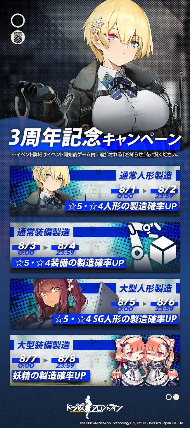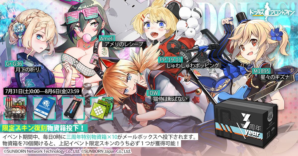 「ドルフロ」3周年イベントの追加情報を公開。限定スキンや製造確率アップなど