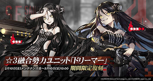 また,2月10日のメンテ後から3月10日13:00までの期間,捕獲作戦で過去に登場した「S05地区対空司令室」が復刻される。こちらでは,★3ユニット「ドリーマー」の捕獲が可能とのこと。