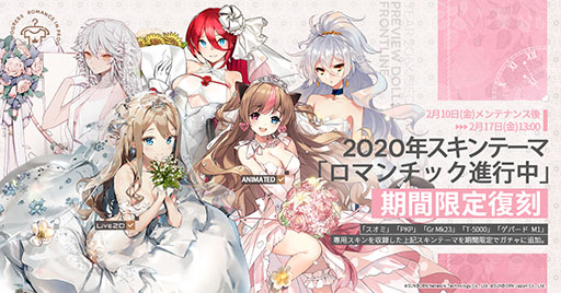 キャラクター達が思い思いのウェディングドレスに身を包んだスキン『ロマンチック進行中』が「2月10日(金)メンテナンス後」から1週間の期間限定で復刻します。