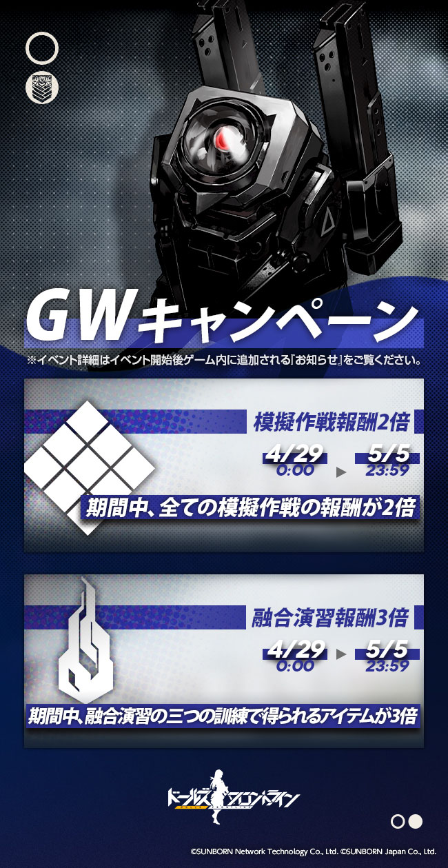 「ドルフロ」,大型イベント“静止点”を5月26日のメンテ後に開始。4月29日に始まるGWキャンペーンの内容も公開に