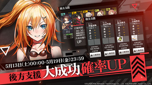 5月13日(土)0時より、各種資源を入手できる「後方支援」の大成功確率がUPするイベントを開催いたします。