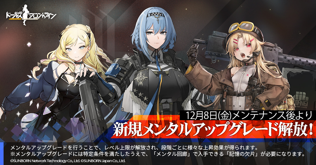 「ドルフロ」,12月8日にDP-12など新たに3名のメンタルアップグレードを追加。復刻クリスマスイベントも実施