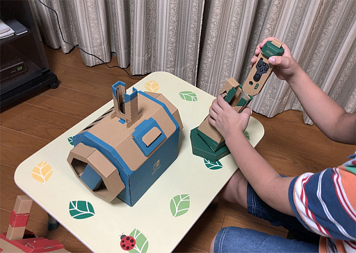 その楽しさがあるから,3時間にも及ぶ製作時間がちっとも苦にならない。むしろ楽しみだと,10歳男子に言わしめた「Nintendo Labo」は,自分でコントローラを製作して遊ぶNintendo Switch用ゲームキットだ。ノリハサミ不要のダンボールシートでコントローラを組み立てて,付属のゲームで遊んだり,オリジナルのゲームや遊びを発明したりできる。いわばアナログとデジタルのいいとこ取りをした新しいおもちゃと言える。